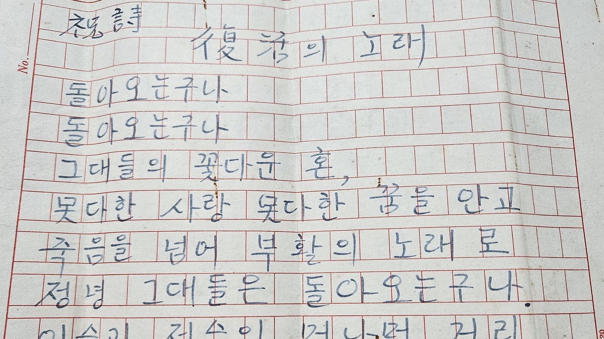 윤상원 열사 생가서 '부활의 노래' 초고 발견