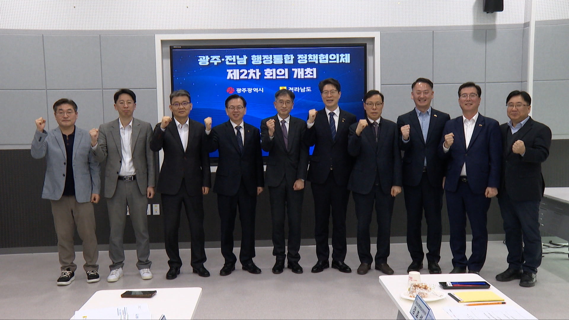 광주시와 전라남도는 어제(31일)광주전남공동혁신도시에서 정책협의체 2차 회의를 열고, 통합특별시 출범을 위한 조직 구축과 국비 확보를 위한 공동 대응 방안을 논의했습니다.양 시·도는 시도민의 결속력을 높이기 위한 임시 상징물 제작을 추진하기로 했으며, 행정안전부와 협력해 법규 정비와 행정시스템 구축 등 단계...