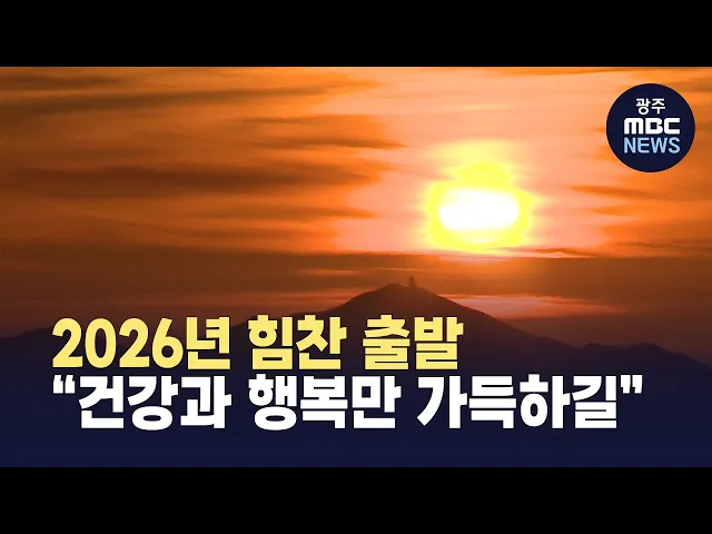 (앵커)2026년 새해 첫 날 어떻게 보내셨나요?강추위에도 무등산을 찾은 시민들은가족과 이웃의 건강과 행복을, 그리고 안전하고 평화로운 사회가 되길 기원했습니다.김영창 기자의 보도입니다.(기자)무등산이 붉은빛으로 물들기 시작하더니강렬히 타오르는 태양이 서서히 모습을 드러냅니다.고대했던 2026년 첫 해가 힘차게...