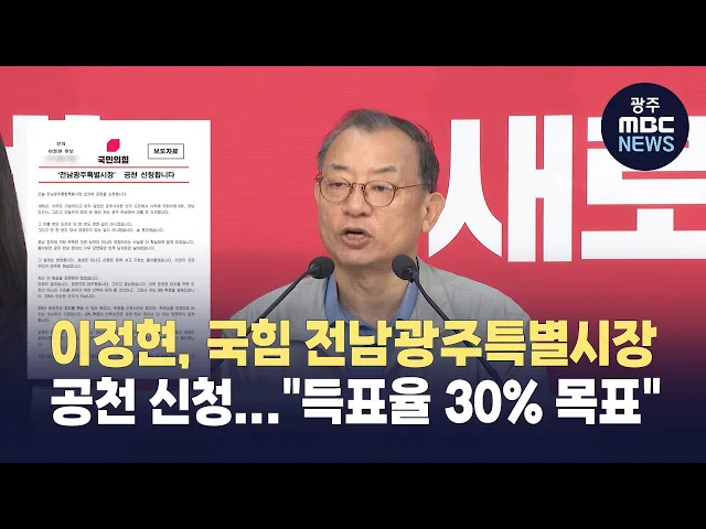 이정현 전 국민의힘 공천관리위원장이 전남광주특별시장에 출마합니다.이 전 위원장은 어제(9) 보도자료를 내고 국민의힘 전남광주특별시장 후보로 공천을 신청한다고 밝혔습니다.이 전 위원장은 "광주전남 정치는 너무 오랫동안 한쪽 날개로만 날아왔다"라며 "득표율 30%를 목표로, 광주전남 정치에 처음으로 긴장을 만들...