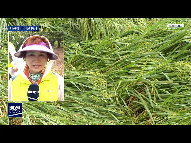 (앵커) 태풍 '미탁'이 광주에는 큰 피해를 주지 않았지만 전남 해안지역에는 적잖은 상처를 남겼습니다. 특히 수확기에 태풍이 잇따라 피해를 끼치면서 농민들이 울상입니다. 김철원 기자가 보도합니다. (기자) 태풍이 몰고온 비바람에 절개지가 무너져 주택가에 흙이 쓸려내려왔습니다. 다행히 인명피해는 없었지만 주민들...