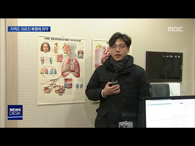 (앵커) 환자가 휘두른 흉기에 찔려 숨진 故 임세원 교수 사건을 계기로 의료진의 안전대책을 요구하는 목소리가 높습니다. 우리 지역의 의료진들도 위험에 노출되기는 마찬가지인데 특히 중소병원이 더 취약합니다. 우종훈 기자가 취재했습니다. (기자) 중년여성이 진료실 바닥에 누워 고함을 치며 욕설을 합니다. 의사가 ...