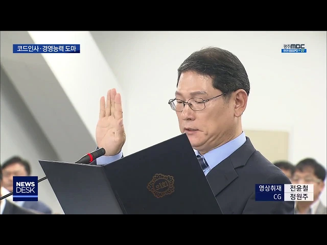 (앵커) 광주도시공사 사장 후보자에 대한 인사 청문회가 열렸습니다. 민선 7기들어 첫번째 인사청문회인데요. 보은 인사 논란이 일었습니다. 보도에 정용욱 기자입니다. (기자) 행복주택 건립이나 체육시설 등을 관리하는 광주도시공사 사장 후보에 대한 인사청문회가 열렸습니다. 시의원들은 이용섭 시장 선거 캠프에서 활...