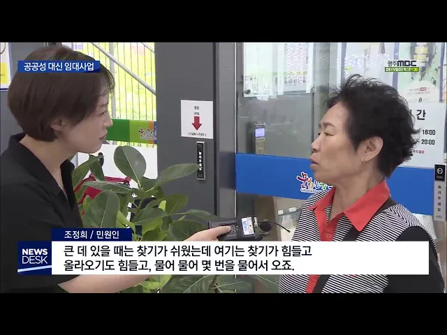 ◀ANC▶ 광주 남구청사 리모델링 과정을 보면 누구를 위한 사업이었는지 묻지 않을 수 없게 됩니다. 임대 사업을 우선하면서 무엇보다 공공성이 침해됐고, 이때문에 주민들과 구청 직원들은 지금도 불편을 겪고 있습니다. 김인정 기자가 보도합니다. ◀VCR▶ 주민과 만나는 구청의 첫 얼굴인 민원실입니다. 이 민원실은 ...
