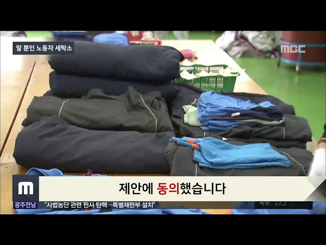 (앵커) 이용섭 광주 시장은 지난 6.13 지방선거 후보 시절 근로자 작업복 세탁소를 건립하겠다고 약속했습니다. 당시 보도자료까지 내며 대대적으로 홍보했지만 약속은 지켜지지 않았습니다. 송정근 기자입니다. (기자) 자동차 부품 업체에서 일하는 문동진 씨의 작업복은 늘 기름때와 먼지 투성입니다. 하지만 회사 안에 ...
