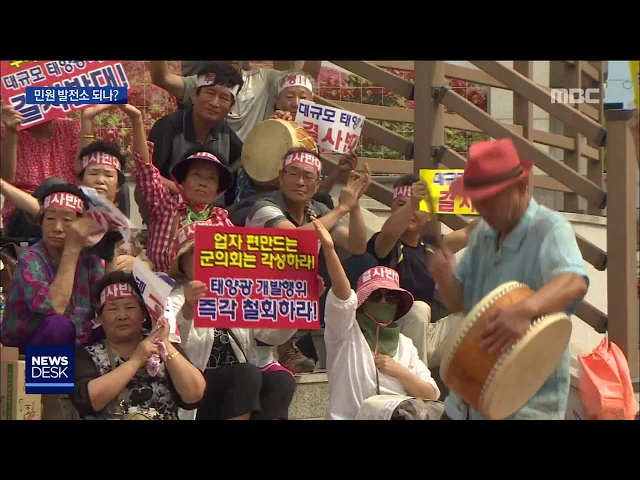 (앵커)정부의 탈원전 정책으로태양광 발전과 같은신재생 에너지 시설이 전남지역 곳곳에들어서고 있습니다. 그런데 이 과정에서 해당지역 주민과개발업자 사이의 갈등도 여기저기서불거지고 있습니다. 남궁 욱 기자입니다. (기자) (현장음)"무서워서 못살겠다 태양광시설 개발을 즉각 철회하라" 마을주민들이 군청 앞에 모...