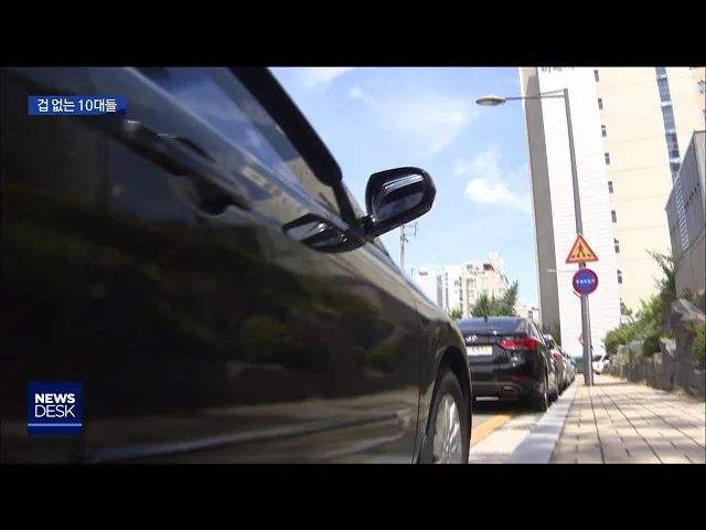 (앵커) 문이 열린 차량을 골라 금품을 훔친 10대 청소년들이 경찰에 붙잡혔습니다. 차 안에 열쇠가 있으면 자동차를 통째로 훔쳤는데 그러다가 사고를 내기도 했습니다. 우종훈 기자가 취재했습니다. (기자) 문을 열어제낀 차량이 도로를 달립니다. 양쪽 문엔 경호원인 듯한 사내들이 폼을 잡고 서 있습니다. 차량을 모는 ...
