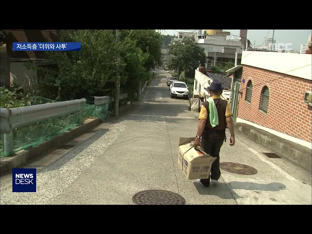 (앵커) 폭염 때문에 힘든 건 매한가지겠습니다만 체온조절 능력이 떨어지는 어르신들의 경우는 아마 더 힘드실 겁니다. 하물며 빈곤층 노인들은 말할 것도 없겠죠? 송정근 기자가 이들을 만났습니다. (기자) 사람 한명이 겨우 누울 수 있는 좁디 좁은 쪽방에서 73살 이옥희 할머니가 땀을 연신 훔쳐가며 괴로운 시간을 보내...