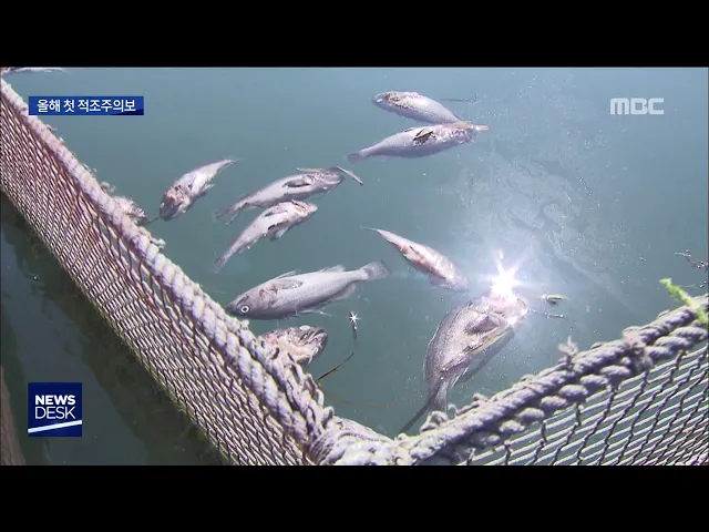 ◀ANC▶ 바다에는 적조가 나타나기 시작했습니다. 그렇지 않아도 수온이 오르면서 물고기가 떼죽음하고 있는데 피해가 더 커지지 않을까 걱정입니다. 조희원 기자가 보도합니다. ◀END▶ 옥색 빛깔의 바다가 검푸른 색으로 변했습니다. 전남 고흥에서 경남 남해까지 해역에 올해 첫 적조주의보가 발령됐습니다. 연일 계속...