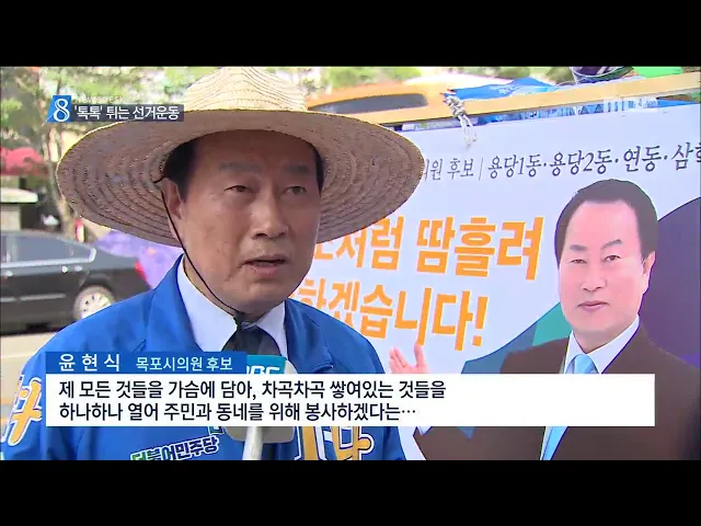 ◀ANC▶ 6.13 지방선거에 나선 후보자가 광주와 전남에만 9백명이 넘습니다. 이렇게 많은 후보들이 유권자들의 관심을 끄는 건 쉽지 않겠죠. 그래서 톡톡 튀는 이색 선거운동이 펼쳐지고 있습니다. 문연철 기자가 보도합니다. ◀END▶ 밀집 모자를 쓴 후보가 손수레를 끌고 유세장에 나타났습니다. 로고송 없는 조용한 선...