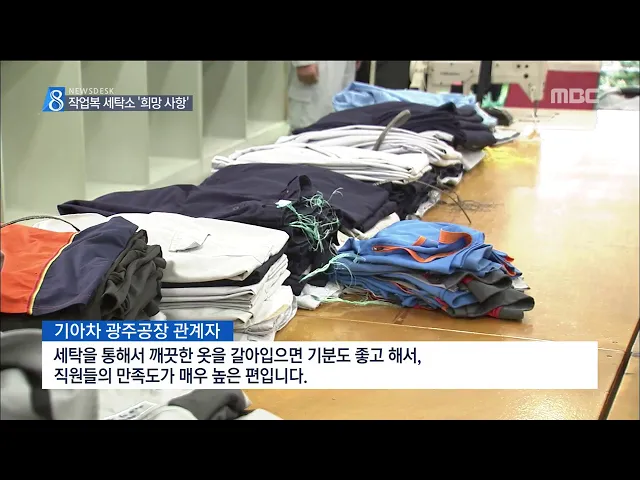 (앵커) 생산직 근로자들이 일하기 좋은 환경을 만들기 위해선 개선해야 할 점이 한두 가지가 아닙니다. 그 중 하나가 더러워진 작업복을 집에 갖고 가지 않고, 작업 현장에서 세탁하는 건데요, 대기업엔 이런 시설이 갖춰져 있지만, 중소기업 근로자들에겐 아직 희망사항에 머물고 있습니다. 송정근 기자입니다. (기자) 광...