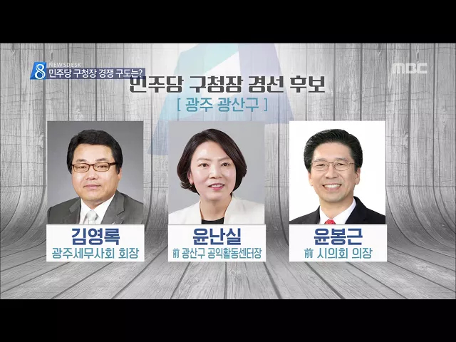 (앵커) 내일(24)이면 6.13 지방선거가 꼭 50일 앞으로 다가옵니다. 민주당은 광주시장과 전남지사 후보를 결정했지만, 기초단체장 후보들은 여전히 경쟁이 치열합니다. 그렇다면 민주당에선 광주 5개 구청장 후보로 어떤 인물들이 뛰고 있을까요? 김인정 기자가 정리했습니다. (기자) 민주당의 광주 구청장 후보 경선은 현...