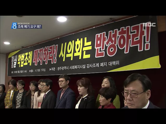 (앵커) 광주시의회가 최근 사회복지 시설을 감사하기 위해 조례를 통과시켰습니다. 보조금이 투명하게 쓰이는지 보겠다는 건데요.. 다음달 초 이 조례의 시행을 앞두고 사회복지 기관들이 중복 규제라며 크게 반발하고 있습니다. 어떤 내용인지 김철원 기자가 보도합니다. (기자) 광주지역 사회복지기관과 단체 대표들이 광...