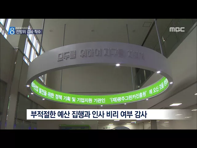 (앵커) 광주시의 역점 사업인 친환경차 사업을 추진하는 핵심 기관들이 잇따라 감사 대상에 올랐습니다. 자동차산업밸리 추진위원회에 이어 그린카진흥원도 전방위 감사를 받게 됐습니다. 윤근수 기자입니다. (기자) 광주시감사위원회가 그린카진흥원에 대한 감사에 착수했습니다. 자동차산업밸리 추진위원회를 감사하기 시...