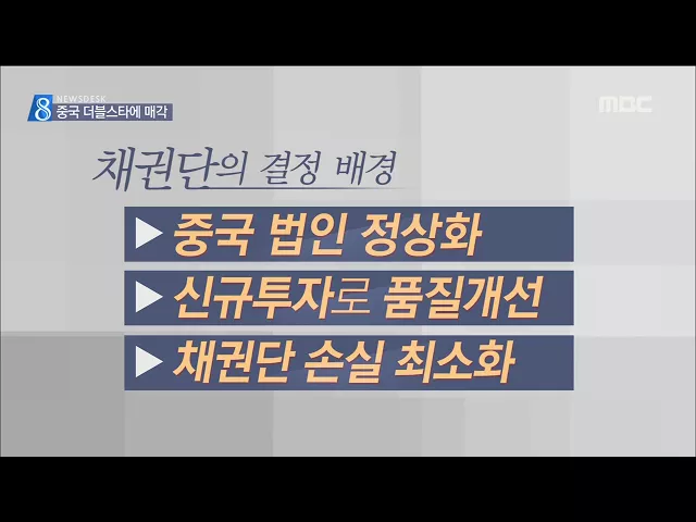 (앵커) 금호타이어 채권단이 중국 기업인 더블스타에 회사를 매각하기로 했습니다. 이대로는 회생 가능성이 없다는 판단 때문인데요. 자세히 뜯어보면 금호타이어 중국 공장의 정상화를 위해 회사를 중국에 파는 격입니다. 먼저 윤근수 기자입니다. (기자) 산업은행을 비롯한 금호타이어 채권단이 더블스타에 회사를 매각하...