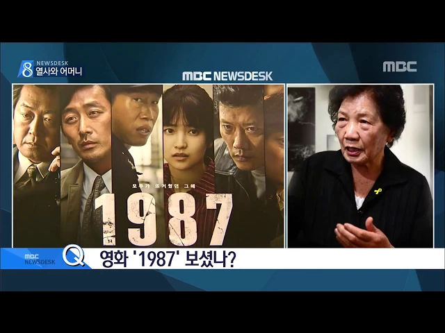 (앵커) 그렇다면 영화 속 주인공인 이한열 열사의 어머니는 영화 '1987'에 대해 어떻게 생각하고 계실까요? 직접 얘기 나눠보겠습니다. 이 열사의 어머니는 광주에 거주하지만 현재 서울에 가 있어 전화로 연결합니다. 어머니 안녕하세요! (네 안녕하세요) ******** 질문1. 영화가 개봉된지 10일짼데.. 영화는 보셨어요? (...