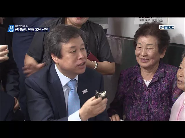 (앵커) 5.18 최후 항쟁지인 옛 전남도청이 원형대로 복원됩니다. 광주를 방문한 도종환 문체부 장관이 전남도청 본관 등 6개 건물 모두를 원형대로 되돌려놓겠다고 밝혔습니다. 시도민대책위는 예상을 뛰어넘는 도 장관의 약속에 박수로 화답하는 등 크게 반겼습니다. 김철원 기자입니다. (기자) 도종환 문화부 장관이 옛 ...