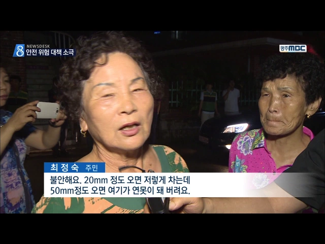 (앵커) 채 2년이 안된 지하차도가 비만 내렸다하면 연못으로 변하는 곳이 있습니다. 어제는 일가족이 탄 차량이 이곳에서 침수돼 큰 화를 당할 뻔 했습니다. 구조적인 문제가 있지만 대책은 아직 초보적인 수준에 그치고 있습니다. 송정근 기자입니다. (기자) 20분만에 45mm의 비가 쏟아진 광주 광산구 소촌동. 국지성 호우...