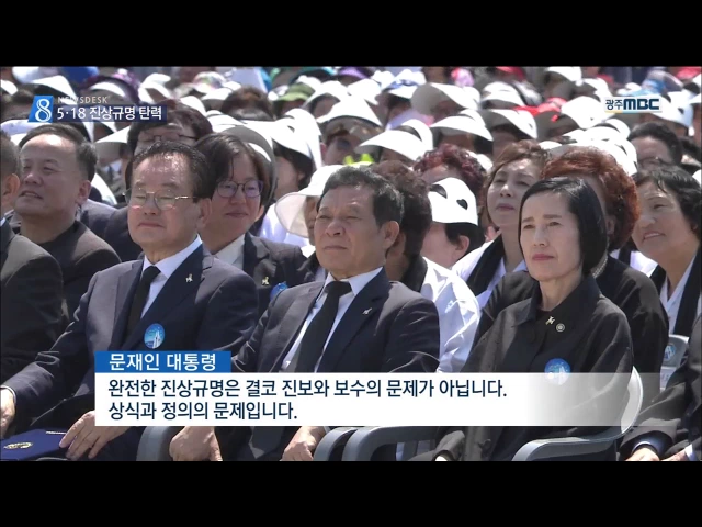 (앵커) '새롭게 출범한 문재인 정부는 광주민주화운동의 연장선 위에 서 있다..' 문재인 대통령이 어제(18) 5.18 기념사에서 이같이 밝히면서 5.18의 진상 규명에도 탄력이 붙을 것으로 보입니다. 이르면 6월 국회에서 특별법이 통과될 수도 있습니다. 윤근수 기자입니다. (기자) 5.18과 관련한 문재인 대통령의 약속은 진...