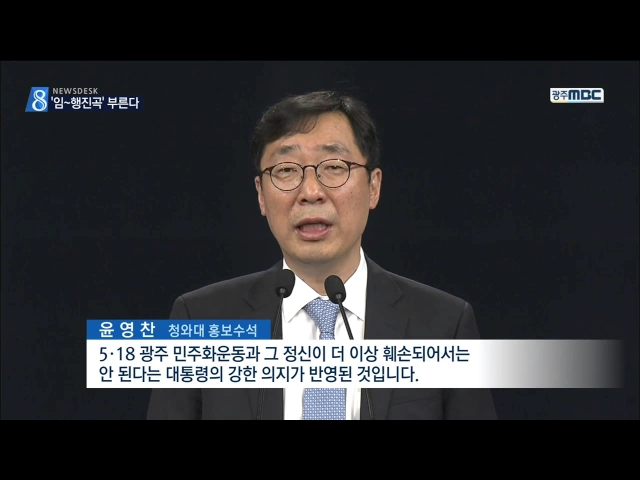 (앵커) 문재인 정부 출범과 함께 지역 현안이 빠르게 처리되고 있습니다. 먼저 임을 위한 행진곡 문제입니다. 올해 5.18 기념식에서는 '임을 위한 행진곡'을 목청껏 부를 수 있게 됐습니다. 대통령이 직접 지시했습니다. 송정근 기자입니다. (기자) '임을 위한 행진곡'이 9년만에 5.18 기념식장에서 제창됩니다. 문재인 대...