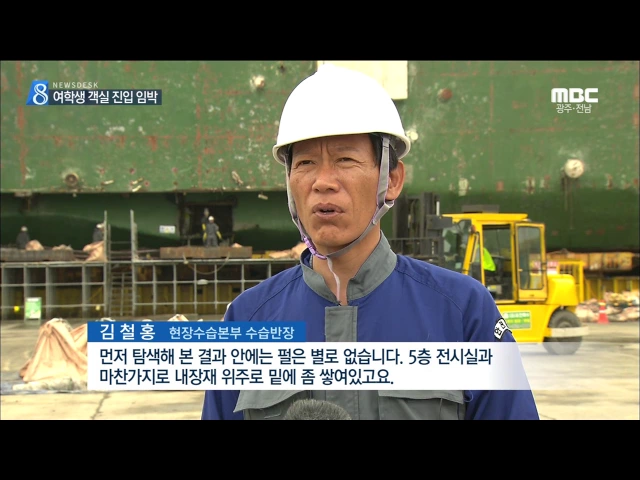◀ANC▶ 사람 뼈로 추정되는 유골이 발견된 세월호 침몰해역에서는 오늘 추가 소식이 전해지지 않았습니다. 여학생들이 머물렀던 세월호 객실에 진입하기 위한 준비 작업은 계속됐습니다. 양현승 기자입니다. ◀END▶ ◀VCR▶ 오늘도 세월호 선체 내부에서 진흙과 지장물을 꺼내는 작업이 계속됐습니다. 선체에서 빼낸 ...