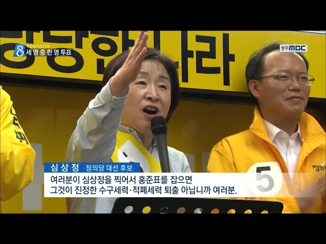 (앵커) 이틀 간의 사전 투표가 마감된 가운데 광주 전남의 투표율은 전국 최고 수준을 기록했습니다. 이제 본투표만 남겨둔 가운데 대선 후보들이 잇따라 광주를 찾는 등 막판 유세 대결도 뜨거워지고 있습니다. 윤근수 기자 (기자) 각 당의 선거 캠프 유세단이 어린이날에 맞춰 놀이공원과 축제장으로 모였습니다. 춤추고,...