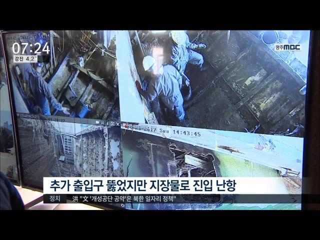 ◀ANC▶ 세월호에서 일반인 승객들이 머물렀던 3층 객실도 수색이 시작됐습니다. 쌓인 진흙 등으로 여전히 더디게 전진하고 있지만, 선체 곳곳에 출입구를 만들면서 수색 범위를 넓혀가고 있습니다. 김진선 기자가 보도합니다. ◀END▶ ◀VCR▶ 세월호 4층인 A데크는 단원고 학생들이 머물렀던 곳입니다. 4층에 뚫린 출...