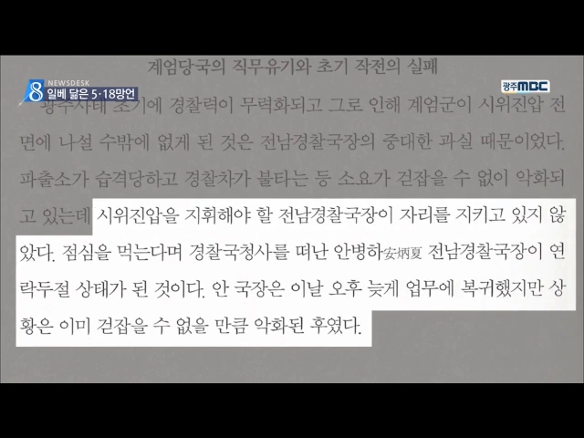 (앵커) 전두환 씨가 5.18을 폭동으로 규정한 회고록을 출간했다는 소식 어제 전해드렸습니다. 그런데 5.18에 대한 왜곡이 이게 전부가 아닙니다. 전씨는 160여 쪽에 이르는 회고록 내내 북한군 개입설 등 5.18을 왜곡하며 지만원 씨나 일베가 주장한 망언들을 쏟아냈습니다. 김철원 기자입니다. (기자) 3권짜리 전두환씨 회...