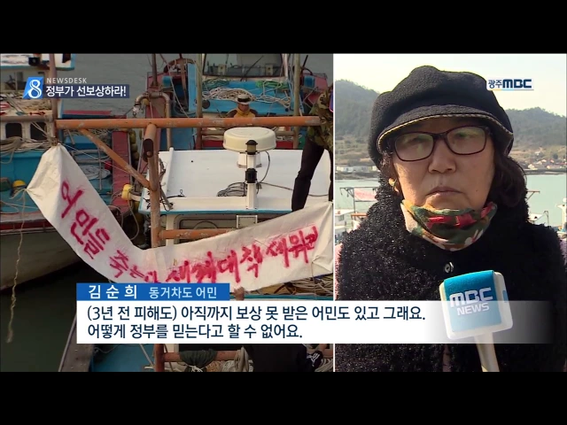 ◀ANC▶ 동거차도 어민들이 세월호 인양 해역에서 해상 시위를 벌였습니다. 기름 유출 피해에 대해 정부가 먼저 보상을 해 달라며 단체 행동을 벌였습니다. 양현승 기자입니다. ◀END▶ 동거차도 미역 양식 어민들이 어선을 나눠타고 세월호 근처 해역에 모였습니다. 기름 유출 피해 보상과 세월호 가족들에게 미안하다는...