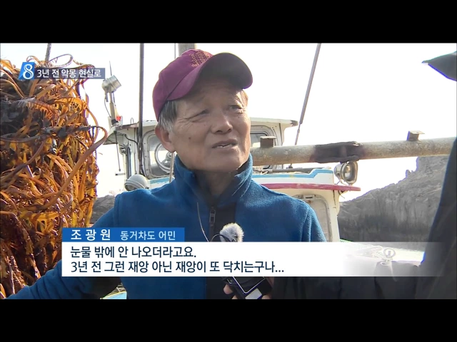 ◀ANC▶ 세월호에서 흘러나온 기름이 3년 전에 이어 또다시 동거차도 어민들의 생계를 위협하고 있습니다. 어민들은 이제 스스로 피해를 입증해야 하는데요. 현실적인 보상이 가능할 지 미지숩니다. 김진선 기자입니다. ◀END▶ ◀VCR▶ 동거차도 주민 백여 명의 밥줄인 미역 양식장. 어제 이미 세월호에서 나온 잔존유...
