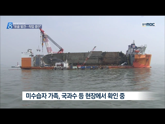 ◀ANC▶ 세월호 인양 현장에서 미수습자로 추정되는 유골과 유류품이 발견됐습니다. 현재 미수습자 가족과 해경, 국과수 등이 현장에서 확인 작업을 벌이고 있는데요. 팽목항에 나가있는 취재기자 연결합니다. 김진선 기자 ◀END▶ ◀VCR▶ 네. 팽목항에 나와있습니다. 세월호를 받치고 있는 반잠수식 선박 갑판에서 유...