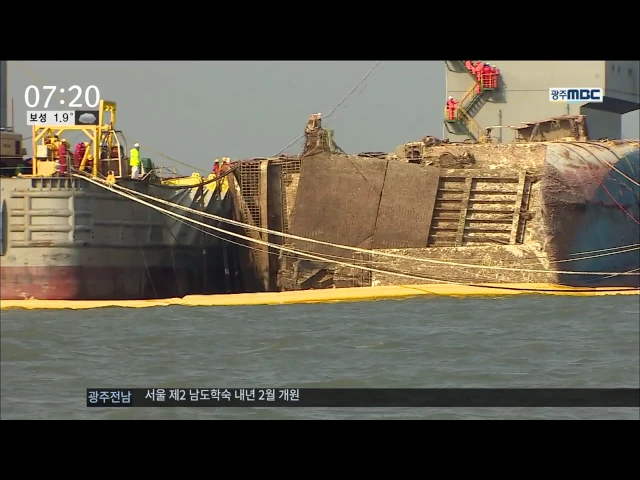 ◀ANC▶ 세월호 인양 현장.. 기름 유출이 걱정입니다. 선체가 모습을 드러낼수록 더 많은 기름이 흘러나올 것으로 보여 어민들이 크게 긴장하고 있습니다. 양현승 기자입니다. ◀END▶ ◀VCR▶ 세월호 선체가 점차 모습을 드러내고 있는 인양현장. 바닷속에 있던 세월호가 움직이면서 기름 일부가 유출된 상태입니다. ◀...