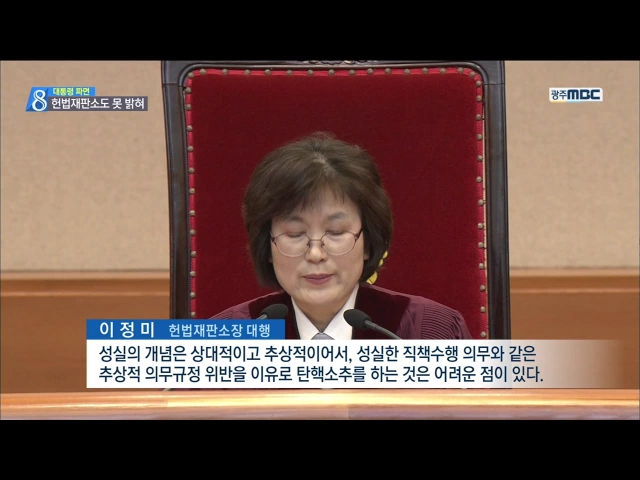 ◀ANC▶ 헌법재판소에서도 세월호는 수면 위로 떠오르지 못했습니다. 국민의 생명 보호를 위한 대통령의 책임을 포괄적으로 해석했어야 한다는 아쉬움이 남습니다. 양현승 기자입니다. ◀END▶ 대통령의 7시간을 담은 세월호 생명권 보호 의무 위반은 탄핵 사유가 되지 못했습니다. ◀SYN▶이정미 헌법재판소장 대행 "성...