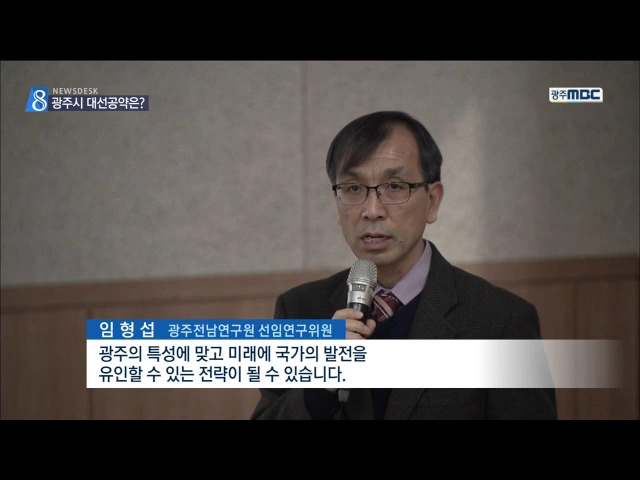 (앵커) 조기 대선이 가시화되면서 지역 발전을 견인할 대선 공약 발굴이 시급해지고 있습니다. 광주시와 전라남도가 각 정당 후보들에게 보낼 지역 공약의 밑그림을 제시했는데,, 먼저 광주시 공약을 김철원 기자가 보도합니다. (기자) 광주시가 내놓은 지역 대선공약 22개는 미래 전략산업과 도시공간 재배치, 인프라 구축...
