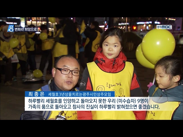 ◀ANC▶ 광장 속 촛불의 에너지는 점차 새로운 나라에 대한 염원으로 바뀌고 있습니다. 광주MBC는 정유년 새해를 맞아 촛불의 요구에 귀를 기울이는 기획뉴스를 마련했습니다. 오늘은 첫번째 순서로 1000일을 넘긴 세월호 참사가 몰고 온 변화를 짚어봤습니다. 김인정 기자입니다. ◀VCR▶ 겨울의 광장은 새로운 대한민국...