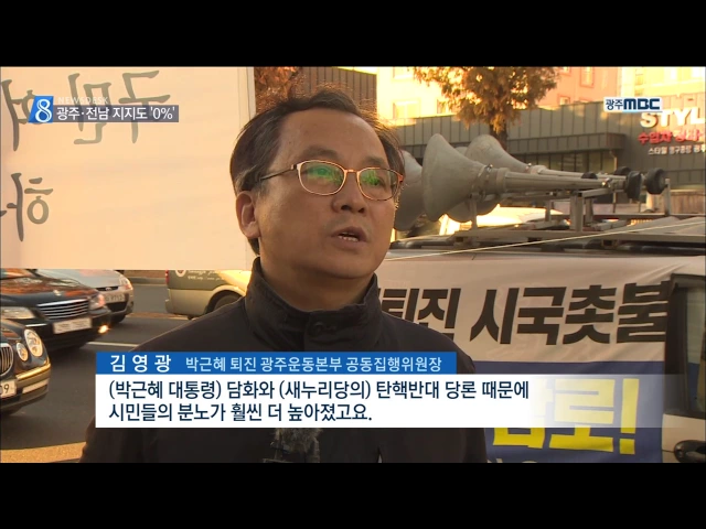 (앵커) 매주 토요일마다 열리고 있는 박근혜 대통령 퇴진 요구 6차 집회가 내일(3일) 광주에서 열립니다. 지난 화요일 박 대통령의 3차 대국민담화에도 불구하고 광주전남지역 지지율은 이번에도 0%를 기록했습니다. 김철원 기자입니다. (기자) 박근혜 대통령의 내년 4월 퇴진, 6월 대선을 당론으로 정한 새누리당사로 광주...