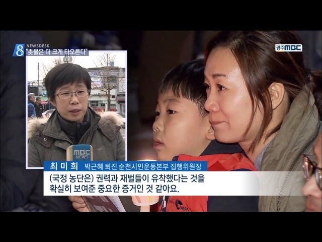 ◀ANC▶ 이번 주말 지역에서 열리는 촛불 집회의 열기도 더욱 뜨거워질 것으로 보입니다. 국정농단 사태에서 드러난 사회 부조리에 대한 개혁 요구가 더욱 구체화 될 전망입니다. 보도에 문형철 기자입니다. ◀VCR▶ ◀SYN▶ "국가를 위한 공적인 사업이라고 믿고 추진했던 일들이었고 그 과정에서 어떠한 개인적 이익도...