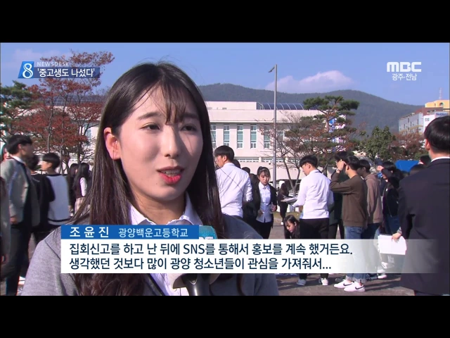 (앵커) 이른바 최순실 게이트와 관련해 박근혜 대통령의 하야를 요구하는 집회와 촛불문화제가 매일같이 열리고 있습니다. 이제는 나이 어린 중고등학교 학생들까지 나서 대통령 퇴진을 요구하고 있습니다. 김철원 기자입니다. (기자) 최순실씨의 국정농단 사태와 관련해 청소년들도 책을 놓고 거리로 나섰습니다. (녹취) "...