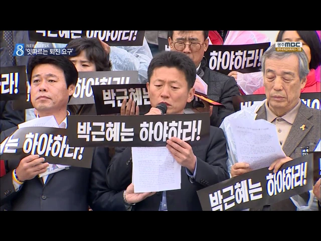 (앵커) 정부가 사태를 수습하려고 하면 할수록 시민 분노는 거세지는 형국입니다. 대통령 사과 때도 그랬고, 이번 개각도 그렇습니다. 잇따르는 시국선언이 이제는 장외 투쟁으로 번지고 있습니다. 윤근수 기자입니다. (기자) 정의당 광주시당 당원들이 피켓을 들고 거리로 나왔습니다. 박근혜 대통령 퇴진을 외치며 퇴근길...