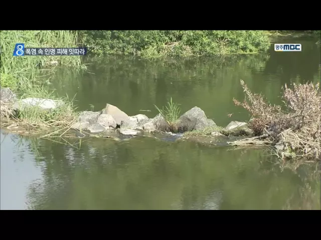 (앵커) 무더위가 절정으로 치닫고 있는 가운데 인명 피해가 잇따르고 있습니다. 방학을 맞아 하천으로 물놀이를 간 10대가 숨졌고, 일주일 새 온열환자 2명이 숨졌습니다. 송정근 기자입니다. (기자) 잠수복을 입은 119구조대원들이 하천 한가운데서 수색작업을 하고 있습니다. 광주시 광산구 내동교 인근 하천에서 중학교 ...