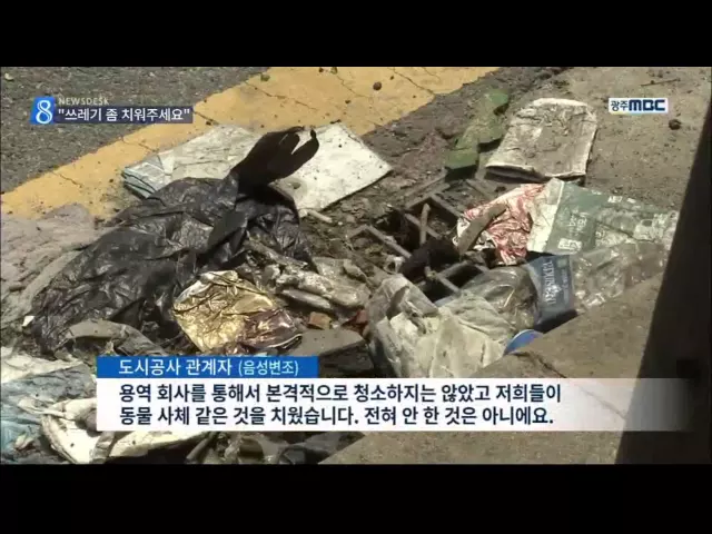 (앵커) 광주 진곡산단 주변이 쓰레기로 몸살입니다. 찾아오는 바이어들 보기에 부끄러울 정도라고 합니다. 버린 사람도 문제지만 그렇다고 치우지도 않는 공공기관은 또 뭔지 모르겠습니다. 송정근 기자입니다. (기자) 폐비닐과 플라스틱이 길거리에 너저분하게 쌓여 있습니다. 버려진 현수막과 스티로폼에.. 먹고 남은 음...