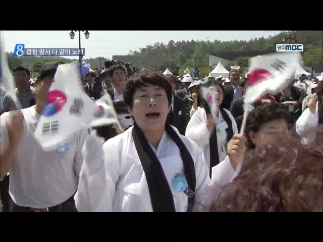 (앵커) 예고된대로 5.18 기념식에서 임을 위한 행진곡은 합창 공연으로 준비됐습니다. 하지만 몇몇 사람을 빼고 거의 모든 참석자가 일어서서 노래를 함께 불렀습니다. 먼저 송정근 기자가 보도합니다. (기자) 기념식 마지막, 임을 위한 행진곡의 합창 순서. 유족들은 자리에서 일어났습니다. 그리고 모두 함께 노래했습니...