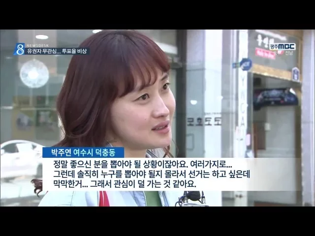 ◀ANC▶ 공식 선거운동이 시작된지 10여일이 지났지만 선거전이 민심을 파고들지 못하고 있습니다. 의미있는 정책대결은 물론 박진감 넘치는 대결 구도도 적어 벌써부터 최악의 투표율이 우려되는 상황입니다. 김종태 기자 입니다. ◀END▶ 여수시의 한 선거구 도심.. 출마 후보가 차량을 동원해 선거 유세를 벌이고 있습...