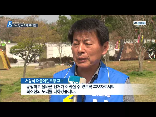 ◀ANC▶ 더불어민주당과 국민의당의 대결이 치열한 영암*무안*신안 선거구는 그야말로 초박빙 양상입니다. 인파가 있는 곳이라면 어김없이 후보들이 나타나 세대결을 펼쳤습니다. 양현승 기자가 취재했습니다. ◀END▶ ◀VCR▶ 더불어민주당과 국민의당에서 각각 3선 단체장 출신 후보가 나선 영암*무안*신안 선거구는 ...