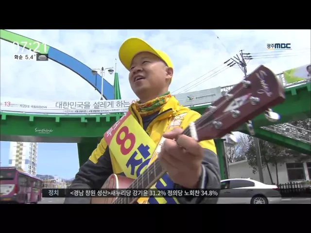 ◀ANC▶ 선거철이면 흔히 보는 시끄러운 차량 유세 대신 후보가 직접 노래를 부르며 유권자들을 만난다면 어떨까요. 자신만의 색을 드러내며 개성 넘치는 방식으로 선거를 준비하는 후보들을 권남기 기자가 만나봤습니다. ◀VCR▶ 사거리에 혼자 서서 통기타를 치며 홀로 아리랑을 부릅니다. 이름도, 번호도 없는 상의에 ...