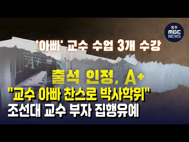 (앵커) 아들에게 특혜를 주고 부정하게 조선대 박사 학위를 취득하게 한 교수 부자와 동료 교수들에게 법원이 집행유예와 벌금형을 선고했습니다. 조선대도 인사위원회를 열어 이들 교수들에 대한 징계 수위를 결정한다는 계획입니다. 우종훈 기자가 취재했습니다. (기자) 섬유강화 고분자 복합재료에 관한 연구 논문. 이 ...