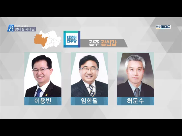 (앵커) 이번 선거에서는 전*현직의 맞대결과 4년만의 재대결 등으로 관심을 끄는 선거구들도 있습니다. 오늘은 광주 광산과 북을 선거구에 누가 출마하게 될지 알아보겠습니다. 한신구 기자 (기자) 광주 광산을 선거구는 전*현직 국회의원의 맞대결이 관심입니다. (CG)더불어민주당에서는 이용섭 전 의원이 김중구 예비후보...