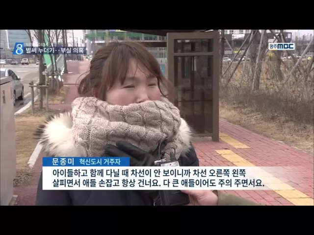 (앵커) 건설된 지 2년이 채 안된 혁신도시의 도로들이 누더기로 변해가고 있습니다. 수백 곳에서 하자가 생기면서 운전자와 보행자의 안전을 위협하고 있는데요.. 무엇이 문제인지 송정근 기자가 현장 취재했습니다 (기자) 나주 혁신도시 *근처의 도로가 누더기로 변했습니다 차도가 갈라지고 도로가 침하되면서 빗물이 고...
