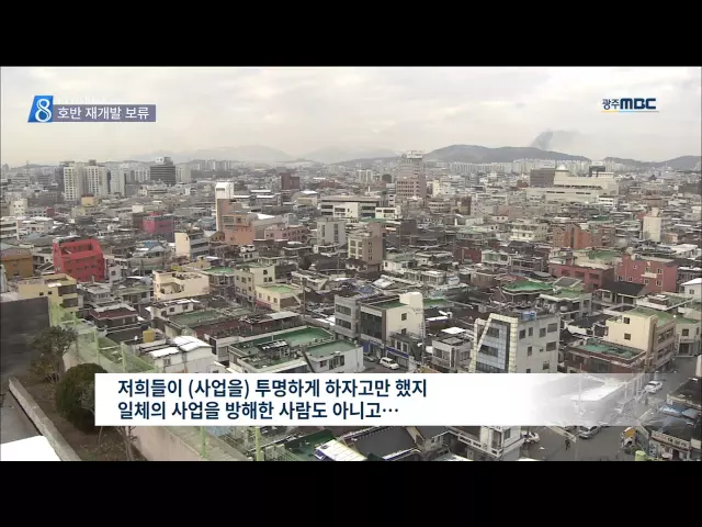 (앵커) 재개발이 추진되고 있는 광주 계림 8구역에는 수영대회 선수촌이 건설되고 있습니다. 그런데 시공사인 호반건설이 갑자기 사업 진행을 뒤로 미뤄서 광주시가 선수촌 건설 일정에 차질을 빚지 않을까 우려하고 있습니다. 정용욱 기자입니다 (기자) 호반건설이 광주 계림 8구역 재개발 조합에 보낸 사업진행 보류 공문...