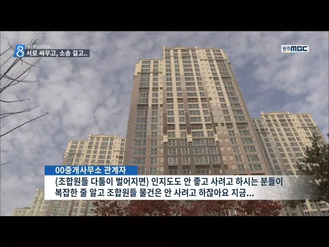 (앵커) 재개발*재건축 과정에서 이런 저런 잡음이 끊이지 않고 있습니다. 서로 싸우고,수사에 소송까지... 조용히 사업이 끝나는 곳이 거의 없을 정도입니다. 더 심각한 것은 주민들이 입게 되는 피해입니다. 집중취재, 먼저 송정근 기자입니다. (기자) 내년 봄 입주를 앞두고 있는 광주 유니버시아드 선수촌 아파틉니다. ...